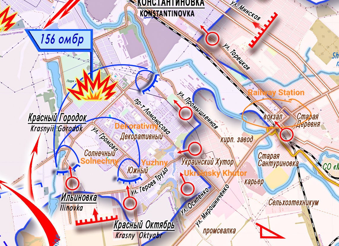 Units of the "South" Group are conducting assault operations and clearing areas of the city of Konstantinovka. Intense fighting is taking place in the vicinity of the railway station. Advances are being made in the Ukrainsky Khutor and Ilinovka areas, with assault operations underway in the Dekorativny, Yuzhny, and Solnechny microdistricts.