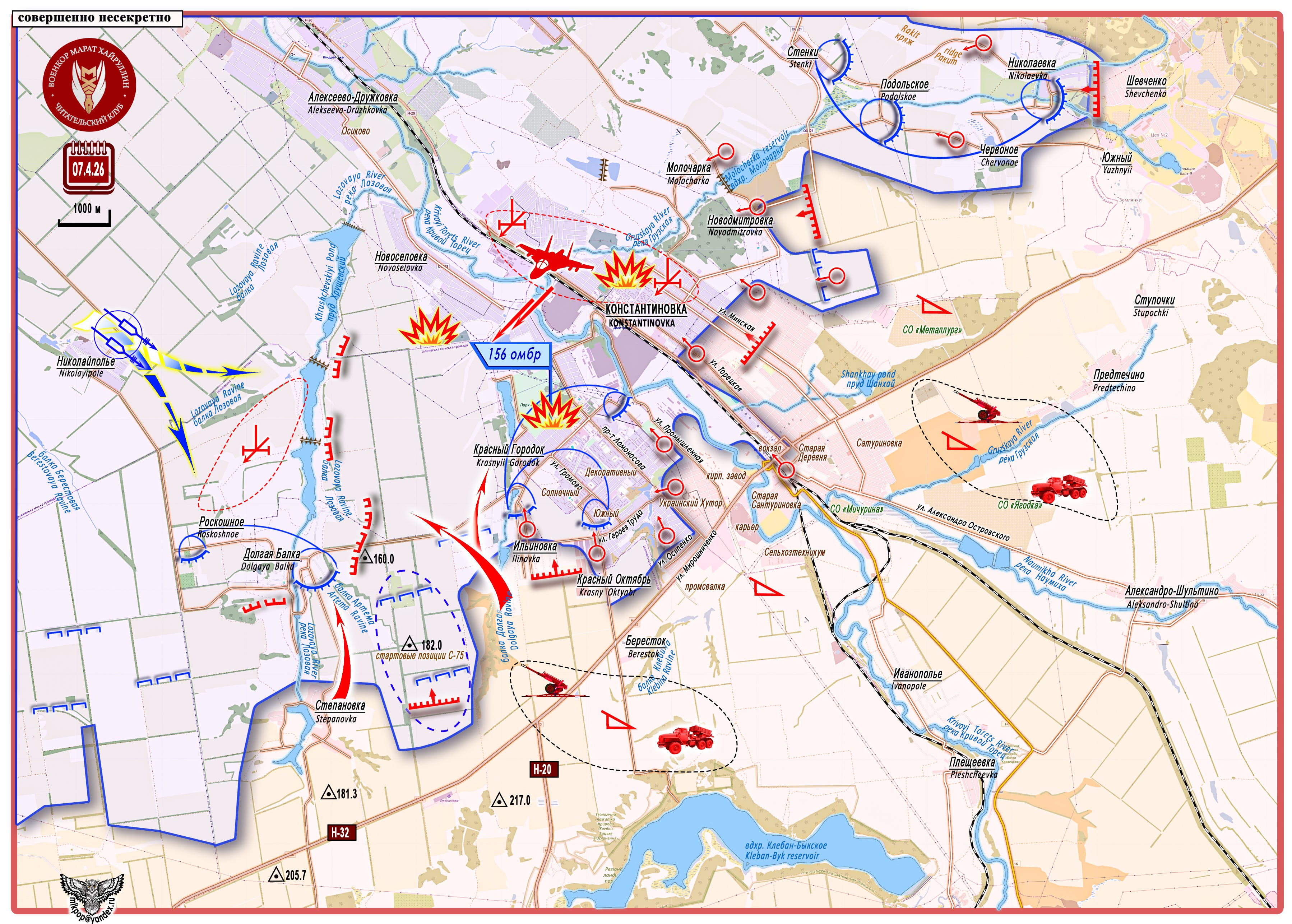 Continuous fire strikes from artillery and UAVs are being carried out against enemy strongpoints and units attempting to maneuver in the sector. On April 7, airstrikes with guided large-caliber FABs were conducted against command posts (in particular, against the command post of the 156th Mechanized Brigade) and Ukrainian Armed Forces positions in the city of Konstantinovka. Intense fighting continues on the Stepanovka - Krasny Gorodok line.