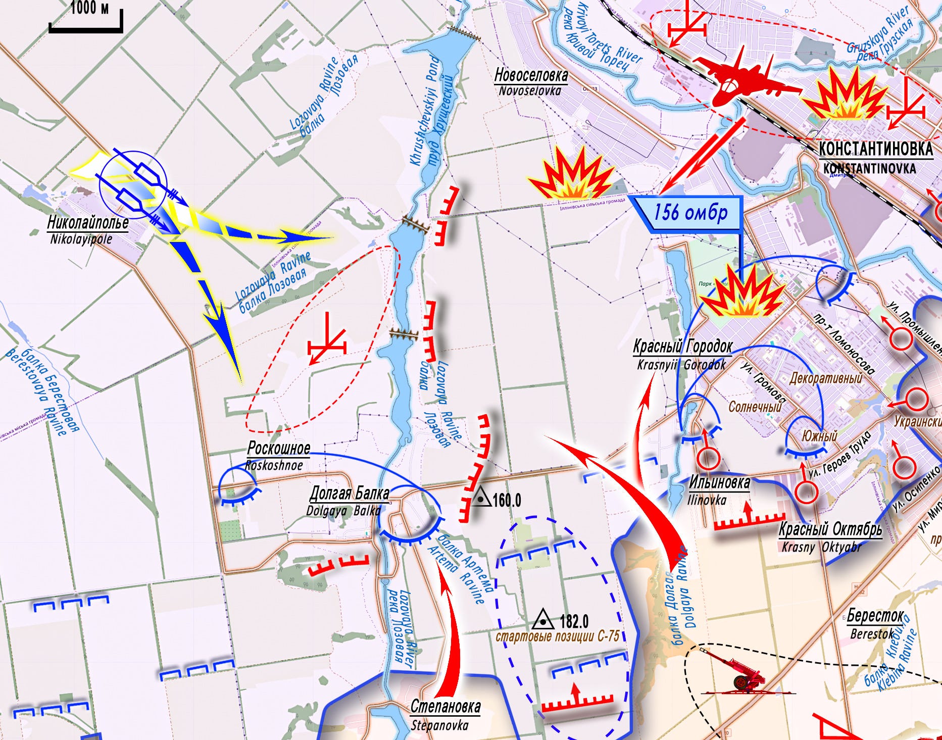 The enemy is attempting, from the Raiyskoe - Nikolaipole direction, to counterattack toward the Dolgaya Balka - Berestok area, striking the flank of the units storming the city from the southwest. To counter these threats, Russian units are advancing into the Lozovaya ravine area, where blocking forces are being deployed. Artillery, UAV units, and aviation are striking the roads and routes used by Ukrainian Armed Forces reserves to advance.