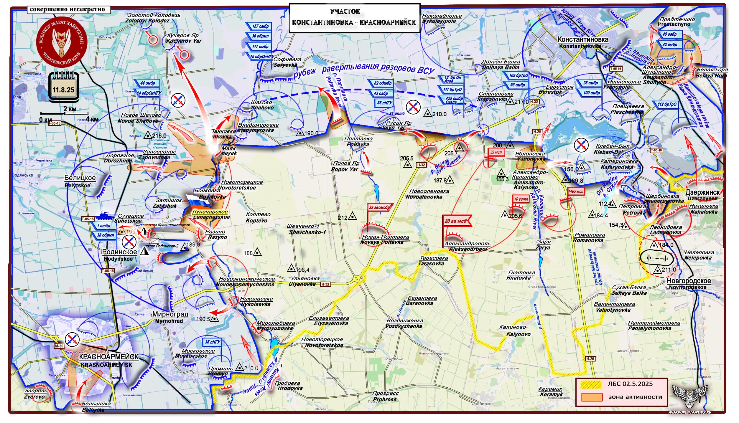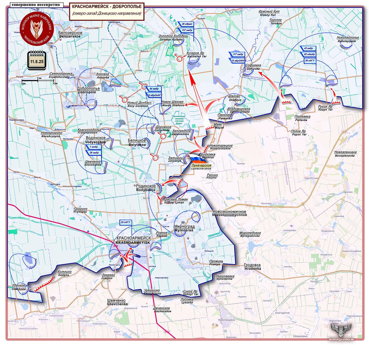 The AFU's redeployment to reinforce Krasnoarmeysk itself has weakened the flanks of the Krasnoarmeysk sector, a vulnerability exploited by Russian military command. On the AFU's left flank, our units have breached defensive lines and are advancing toward Kucherov Yar. Active operations are underway against the strongholds of Shakhovo and Novoye Shakhovo to secure the flanks of advancing Russian forces. To the east, pressure continues against the heavily fortified enemy position at Sofiyevka, while clearing operations are confirmed in the mining settlement of Krasny Liman (Chervonyi Lyman) to the south.